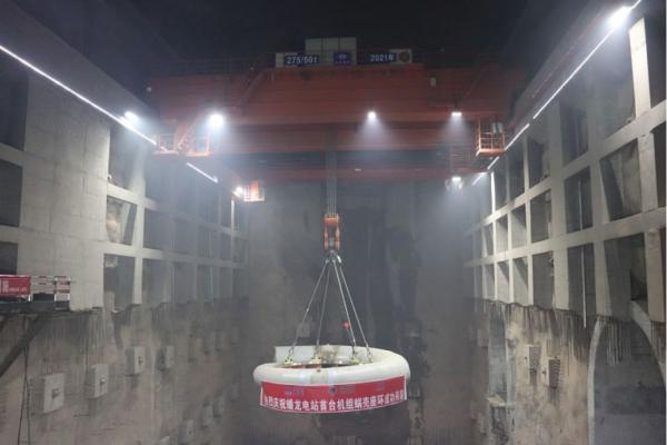 上午9點03分,現(xiàn)場總指揮發(fā)出“起吊”指令,首臺機組蝸殼座環(huán)在安裝間緩緩拔地而起,在地下廠房懸空穩(wěn)穩(wěn)前行67米之后,到達1號機組段上方。