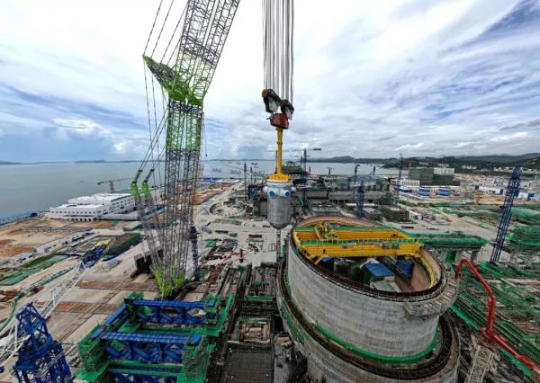 8月9日,我國(guó)自主三代核電華龍一號(hào)批量化工程——中核集團(tuán)漳州核電2號(hào)機(jī)組反應(yīng)堆壓力容器順利吊裝就位。這是該機(jī)組繼三臺(tái)蒸汽發(fā)生器吊裝成功之后,主設(shè)備預(yù)引入工作再次取得的重大進(jìn)展,為后續(xù)內(nèi)穹頂?shù)跹b及主管道焊接創(chuàng)造了先決條件。