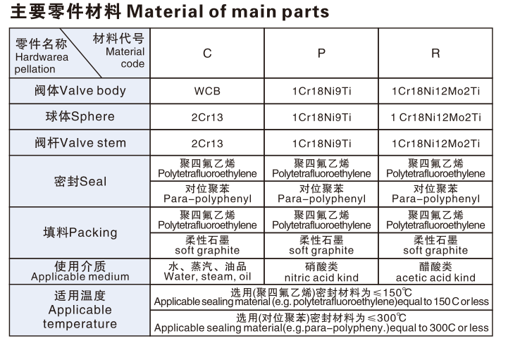 | 密封圈 | 聚四氟乙烯(PTFE)、增強(qiáng)聚四氟乙烯(PPL)、對位聚苯、柔性石墨 | |||