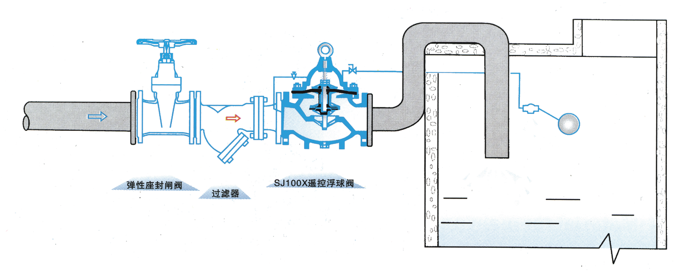 SJ100X遙控浮球閥是兼具多種功能的水力操作式閥門。要安裝于水池或高架水塔的進(jìn)水口處,當(dāng)水位達(dá)到設(shè)定的高度時,主閥由浮球?qū)чy控制關(guān)閉進(jìn)水口停止供水;當(dāng)水位下降后,主閥由浮球開關(guān)控制打開進(jìn)水口向水池注水,實(shí)現(xiàn)自動補(bǔ)水。液位控制精確,不受水壓干擾;100X隔膜式遙控浮球閥可隨水地池的高度及使用空間任意位置安裝,維護(hù)、調(diào)試、檢查方便、密封可靠、使用壽命長。隔膜式閥門性能可靠。強(qiáng)度高、動作靈活適用于450MM口徑以下的管道。DN500MM口徑以上的建議使用活塞式。