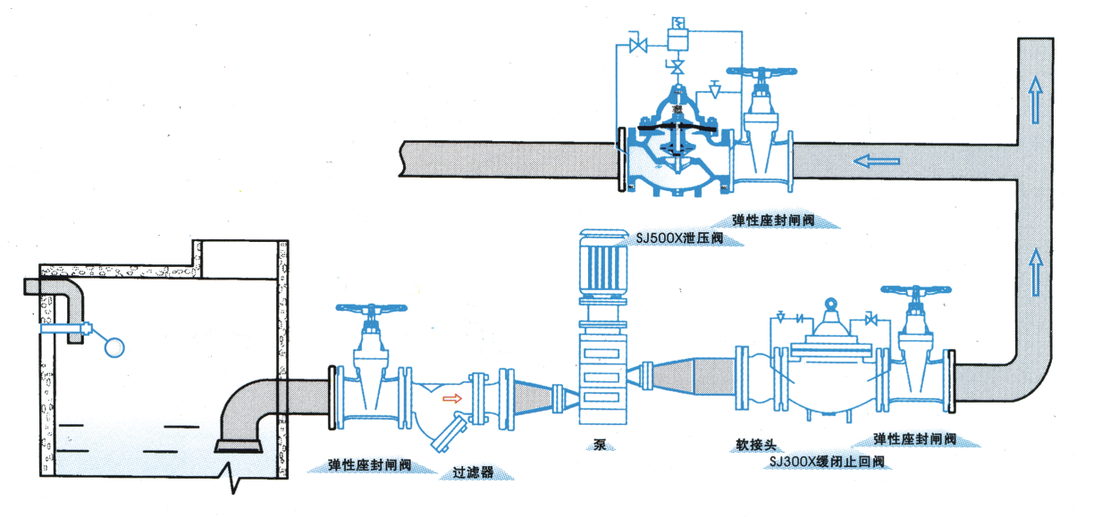 該閥主要用于管路系統(tǒng)中,以防止管路系統(tǒng)超壓或維持管路的壓力,當(dāng)泵關(guān)閉后還可以減少水錘沖擊。也可用于大型供水系統(tǒng)的水錘消除裝置,并且閥門控制系統(tǒng)的進(jìn)口處裝有一個(gè)自清洗濾網(wǎng),利用流體特性,使比重較大、直徑較大的懸浮顆粒不會(huì)進(jìn)入控制系統(tǒng),確保主閥的上游供水壓力某一設(shè)定值上使系統(tǒng)循環(huán)暢通無(wú)阻,該閥起閉靈敏、安全可靠、動(dòng)作平穩(wěn)、使用壽命長(zhǎng).