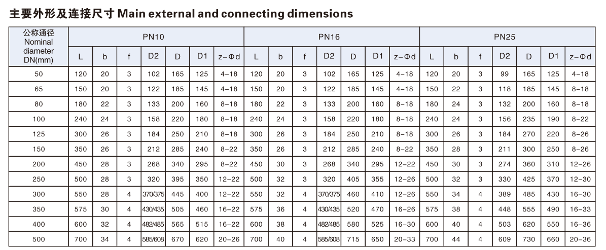 注:法蘭連接尺寸:鐵制閥門按GB4216.4(5)-84標(biāo)準(zhǔn),鋼制閥門按GB/T9113.1-2000(RF)標(biāo)準(zhǔn)。