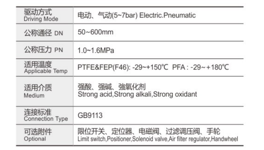 D671F四氟密封氣動對夾式蝶閥采用帶有球形密封表面的襯氟塑料包襯蝶板或不銹鋼板,配以閥座基部的硅橡膠襯墊調(diào)節(jié)閥門的密封性能;該閥門操作輕便,嚴(yán)密的密封性能,超長的使用壽命;可作快速切斷或調(diào)節(jié)流量之用。適用于要求可靠密封和良好調(diào)節(jié)特性的場合。閥體采用分體式,閥軸現(xiàn)端的密封由蝶板與閥座之間的旋轉(zhuǎn)基面加氟橡膠來控制, 從而達(dá)到產(chǎn)品結(jié)構(gòu)緊湊、外形美觀、工藝合理、性能可靠。切斷閥保證閥軸不與腔內(nèi)流體介質(zhì)接觸,更換閥軸時非常方便,閥門不需要拆離離管道即可完成。產(chǎn)品廣泛適用于各種不同類型工業(yè)管道中液體和氣體(包括蒸氣)的輸送,特別是具有嚴(yán)懲腐蝕性介質(zhì)的使用場合如硫酸、氫氟酸、磷、酸、氯氣、強(qiáng)堿,王水等具有強(qiáng)腐蝕的介質(zhì)。