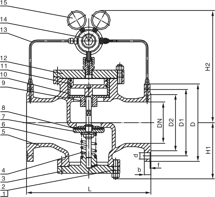 本系列減壓閥屬于先導活塞式減壓閥。由主閥和導閥兩部分組成。主閥主要由閥座主閥盤、活塞、缸套、彈簧等零件組成。導閥主要由閥座、閥瓣、膜片、彈簧、調(diào)節(jié)彈簧等零件組成。通過調(diào)節(jié)調(diào)節(jié)彈簧壓力設(shè)定出口壓力,利用膜片傳感出口壓力變化,通過導閥啟閉驅(qū)動活塞調(diào)節(jié)主閥節(jié)流部位過流面積的大小,實現(xiàn)減壓穩(wěn)壓功能。