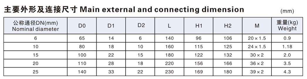 | 公稱直徑DN(mm) | 尺寸 | 重量(kg) | ||||||