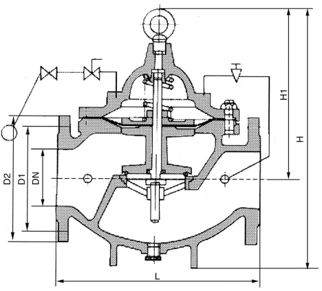 該閥主要安裝于水池或水塔的進(jìn)口處,當(dāng)水位達(dá)到設(shè)定高度時,主閥由浮球?qū)чy控制關(guān)閉進(jìn)水口停止供水、當(dāng)水位下降后,主閥由浮球?qū)чy開關(guān)控制打開進(jìn)水口向水池或水塔供水,實(shí)現(xiàn)自動補(bǔ)水。